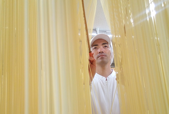 五島うどんを作るとき、いつも心に想うのはうどんを茹でる湯気の向こうに浮かぶお客様の笑顔です。